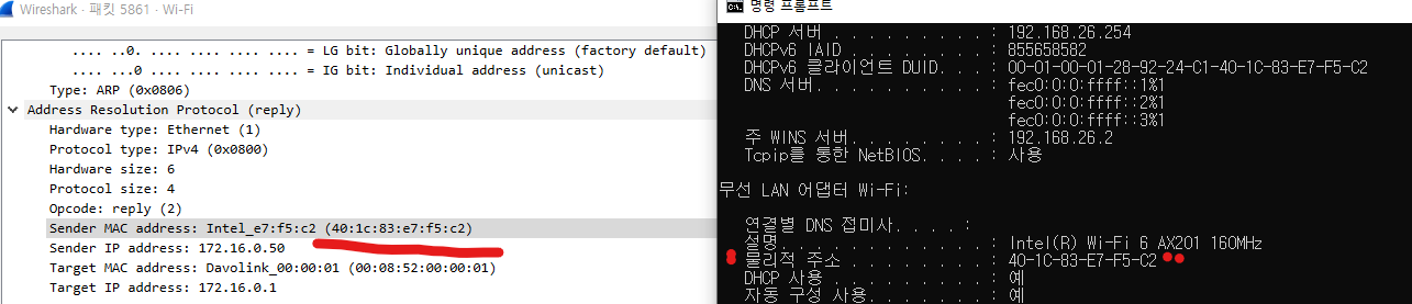 1.다른곳에서 나의 mac주소를 찾으려 함.