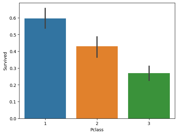<AxesSubplot: xlabel='Pclass', ylabel='Survived'>