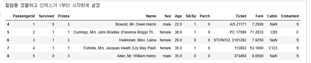 print("컬럼을 정렬하고 인덱스가 1부터 시작하게 설정")