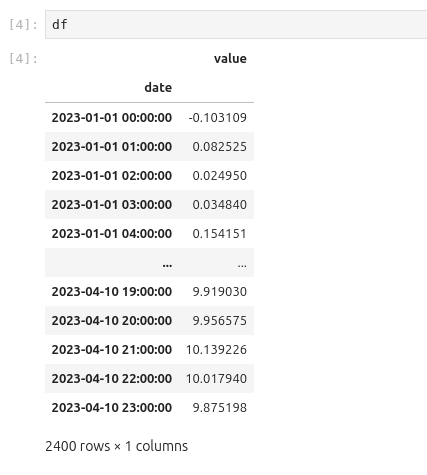 'value': np.linspace(0, 10, 100*24) + np.random.normal(scale=0.1, size=100*24) # sin 함수에 노이즈를 더한 값 생성