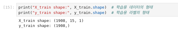y_train, y_test = y[:train_size], y[train_size:] # 테스트용 데이터