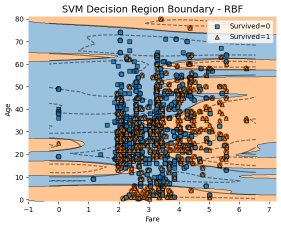 이를 통하여 Fare가 높고 나이가 어릴수록 생존 확률이 높았다.