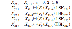 X[32][7] = X[31][7] xor ( F1( X[31][6] ) ⊞ SK[127] )