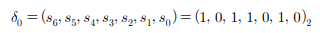 delta[0] = ( 1 , 0 , 1 , 1 , 0 , 1 , 0 )