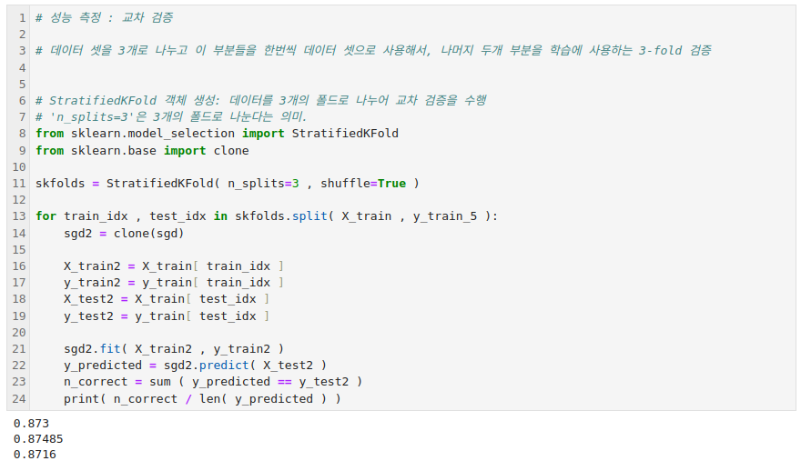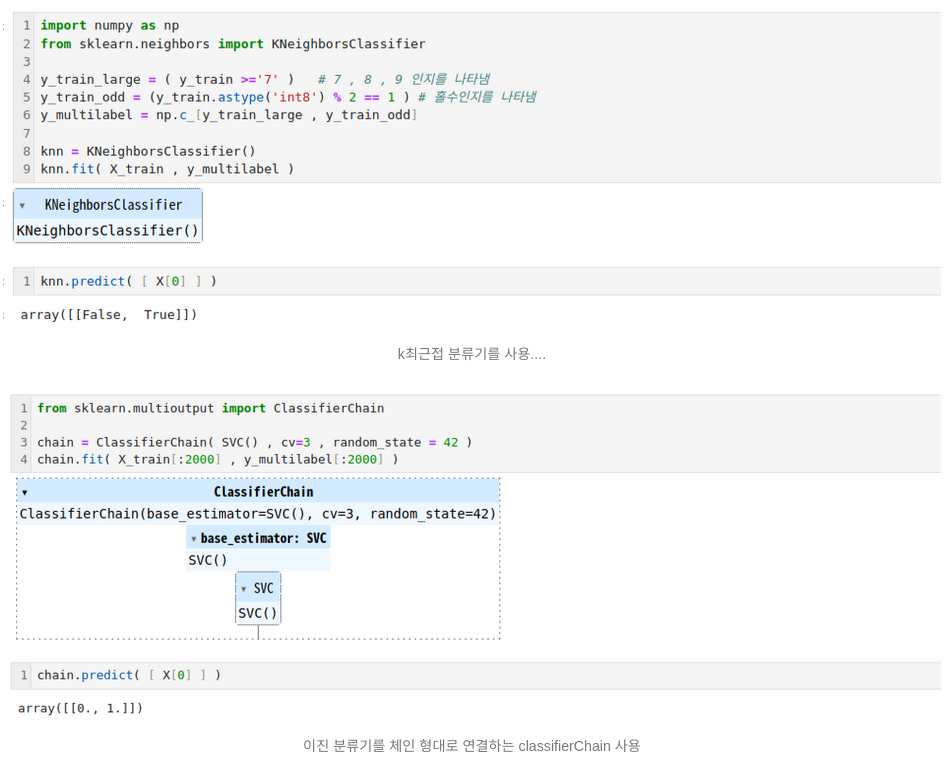 이진 분류(SGDClassifer) , 다중 분류 ,성능 측정: 교차검증 k-fold && 오차행렬, 정밀도 및 재현율 , 다중 레이블 분류 classifier chain