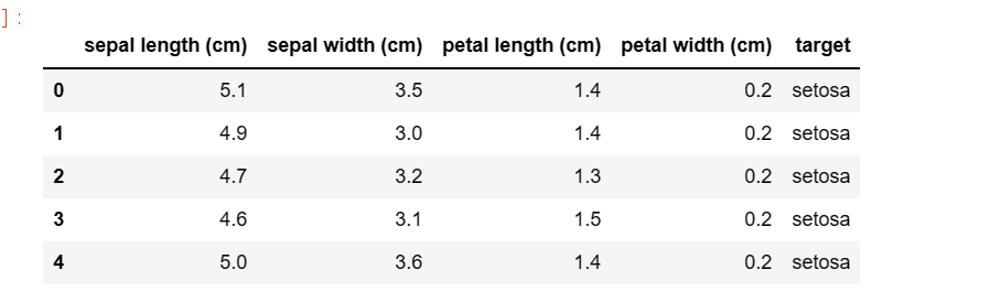 df_iris['target'] = df_iris['target'].apply(lambda x: 'setosa' if 0 == x else ('versicolor' if 1 == x else 'virginica'))