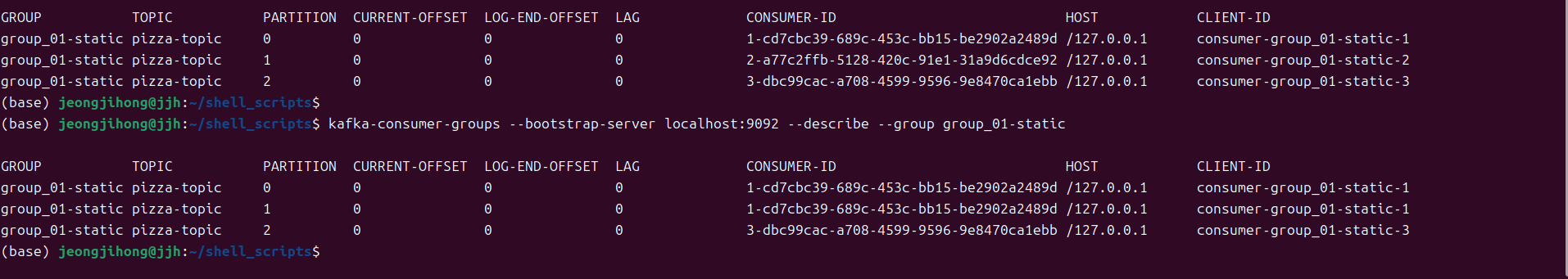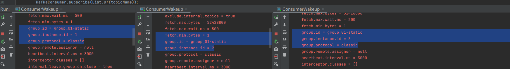 1. consumer를 3개 기동시킨다.