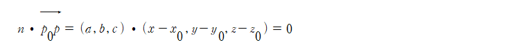 - 평면 위의 한 점과 그 평면의 법선 벡터를 이용하여 평면을 정의하는 방정식