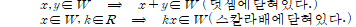 - n차원의 실수 집합에서 W가 부분집하지라고 하면, W는 이의 부분 공간이다.