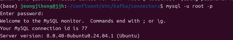 - mysql -u root -p 를 사용하여 mysql에 진입한다.