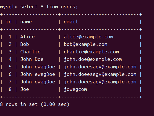 - select * from users; 로 내부 확인 가능