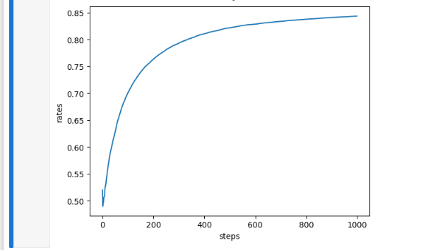 rates.append( sum_of_reward / (step+1) ) # 현재까지의 승률을 저장