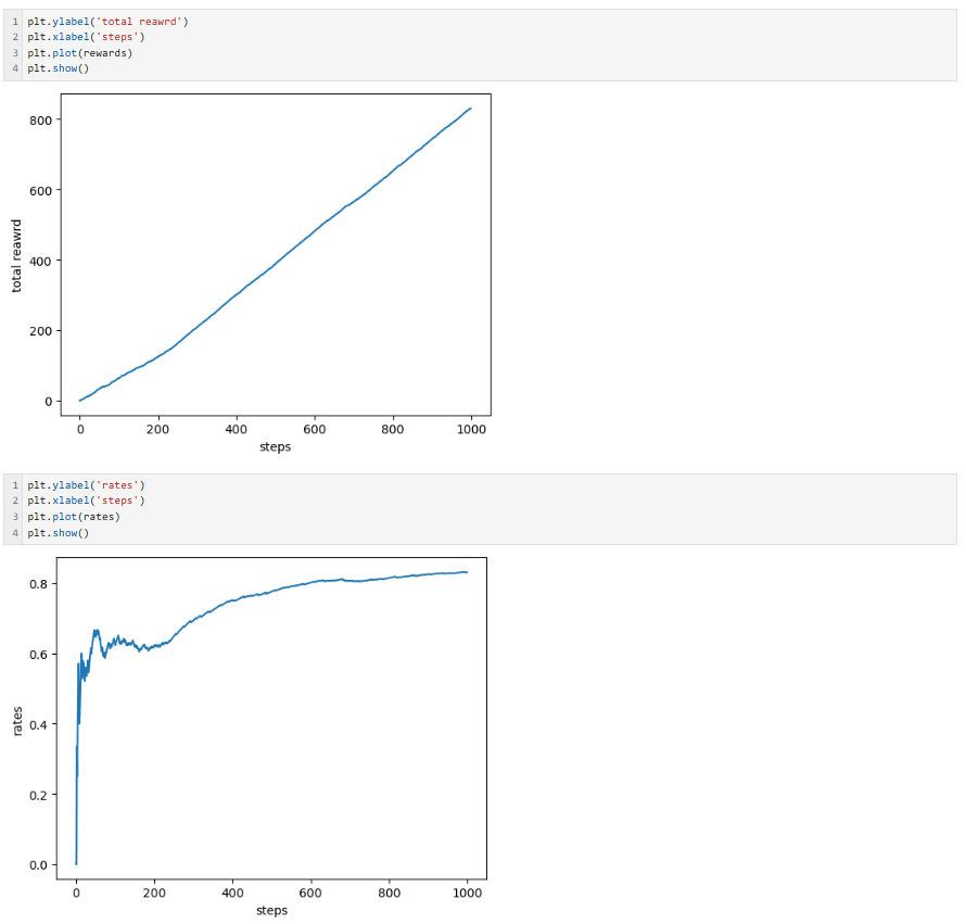self.rates = np.random.rand(arms) # 슬롯머신의 각각의 승률을 무작위로 설정. np.random.rand로 배열 생성