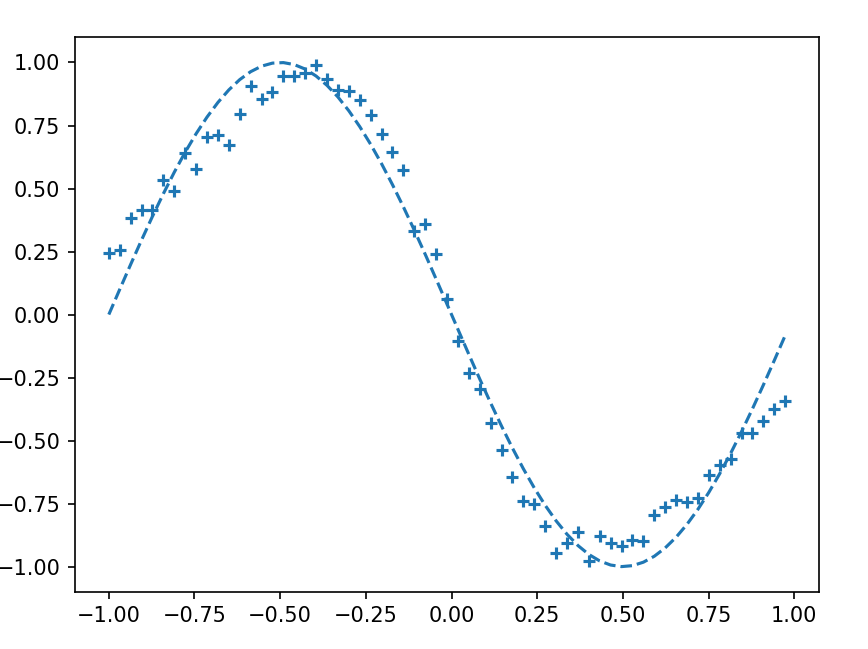 plt . plot ( x , sin_data , linestyle = "dashed" )