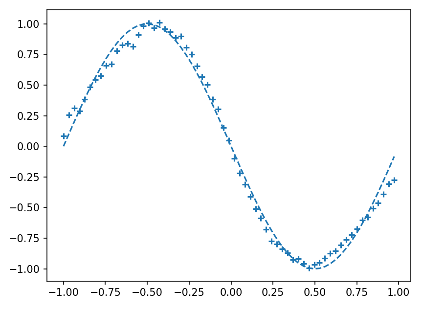 plt . plot ( input_data , correct_data , linestyle = "dashed" )