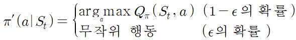 그리고 갱신이 끝나면 개선을 합니다.- 갱신은 Q함수를 업데이트하고, 개선은 정책을 업데이트하는거임. ( 식[4] 참고 )