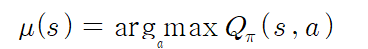# 즉, 행동가치함수인 Q함수의 값이 가장 큰 챌동만 하게 확률 분포를 만들어 준다.