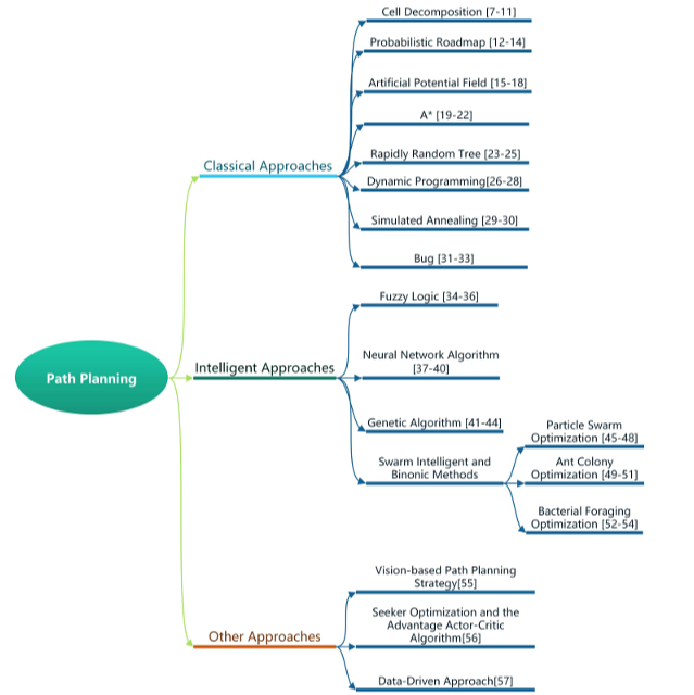 - 본 논문에서는 robot vehcles의 기술 중 하나인 path planning을 3가지의 카테고리로 나누어 설명하였다. ( 전통적인 접근법 , 지능 기반 접근법 , 그리고 그외의 것들... )