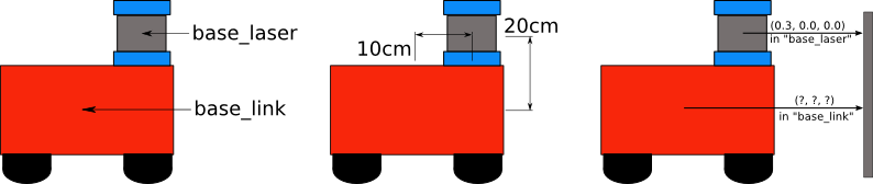- ex) 이동식 베이스인 mobile base가 존재하고, 위에 laser sensor가 달린 간단한 로봇을 생각해보자.