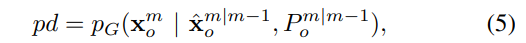 - 이때, 가우시안 확률 밀도를 평가하여 다음과 같이 연관성을 계산한다. ( 식 5 )