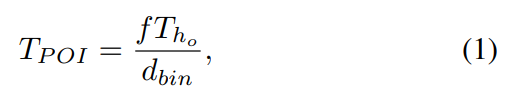 이러한 특성을 바탕으로, 히스토그램의 bin 값이 임계값 T_POI보다 크면 관심 지점(point of interest)으로 간주한다. (식 1)- 아래의 식에서 f는 초점 거리다. T_ho는 공간상에서의 장애물 높이에 대해서 미리 정의한 임계값. d_bin은 히스토그램의 해당 bin에서의 깊이 값이다.