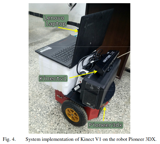 - 앞서 설명한 시스템은 연구·실험용으로 널리 사용되는 바퀴형 모바일 로봇인 Pioneer 3DX 모델을 이용하여 그림 4에 보이는 바와 같이 성공적으로 구현되고 엄격하게 시험되었습니다.