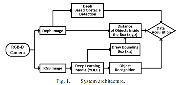 - [19]에서는 Microsoft Kinect 센서를 YOLO 알고리즘과 통합하여 물체 검출 및 분류를 수행하고, 깊이 센서를 이용해 물체 거리를 측정하였습니다.