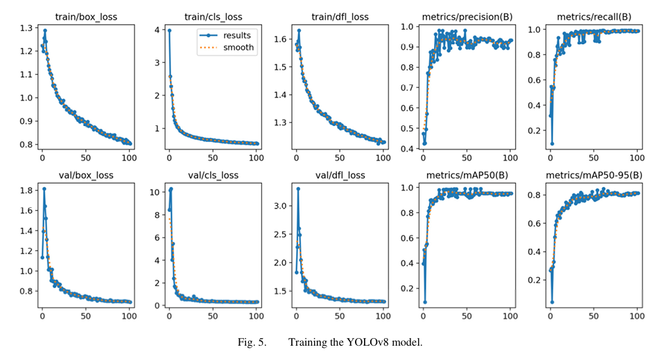 평균 정밀도(mAP) 0.5 기준에서 95%를 기록하며, 실시간 객체 검출 과제에서 최신 알고리즘들을 능가하는 성능을 입증하였다. 학습 결과는 그림 5에 제시된 바 있다. - 손실 곡선 수렴(Loss Curve Convergence)