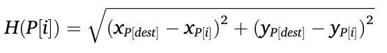 - H는 현재 노드에서 goal position까지의 예측 비용 함수(휴리스틱)을 의미.