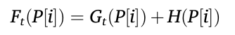 - DASA-star알고리즘의 평가함수 F_t( P[ i ] )는 아래와 같이 정의한다.